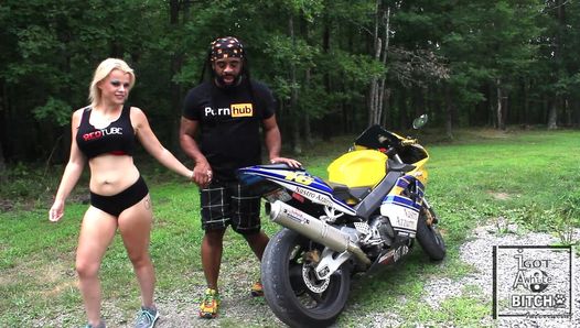 HD- Nadia White and Don Whoe rev it up on his Bike